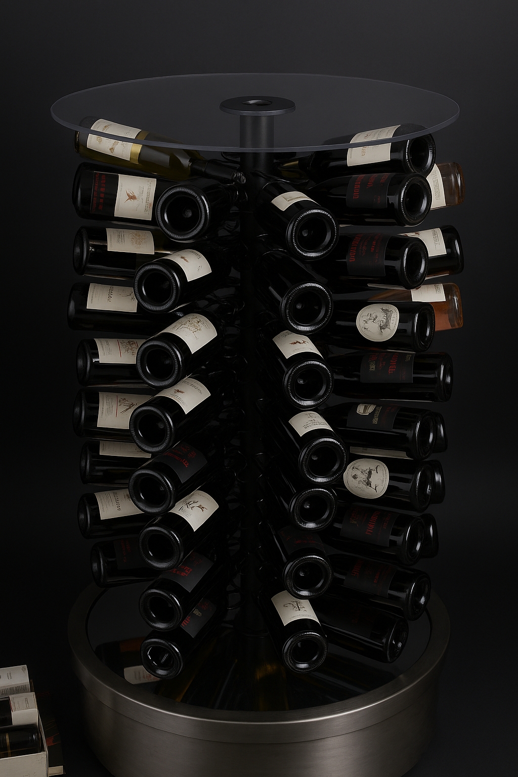 Elbarril forener raffineret æstetik og teknisk perfektion. Opbevar op til 500 flasker vin i et møbel, der samtidig forvandler sig til et elegant barbord – med ét tryk. Skabt og fremstillet i Danmark. Fås med eller uden køl.